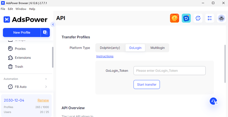 ● Bulk Migration from GoLogin: Easily migrate all your GoLogin profiles in one go, reducing time and improving workflow efficiency.